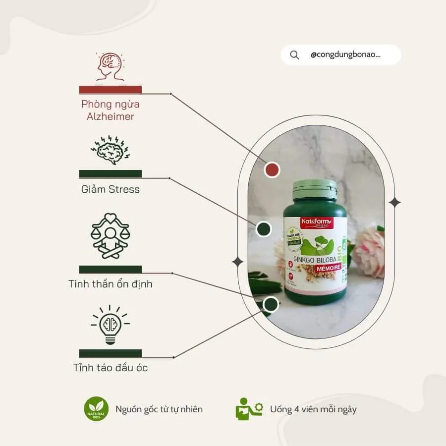 - Nguồn gốc thiên nhiên: Thành phần chính từ lá Ginkgo Biloba hữu cơ, không gây tác dụng phụ, thân thiện với sức khỏe.