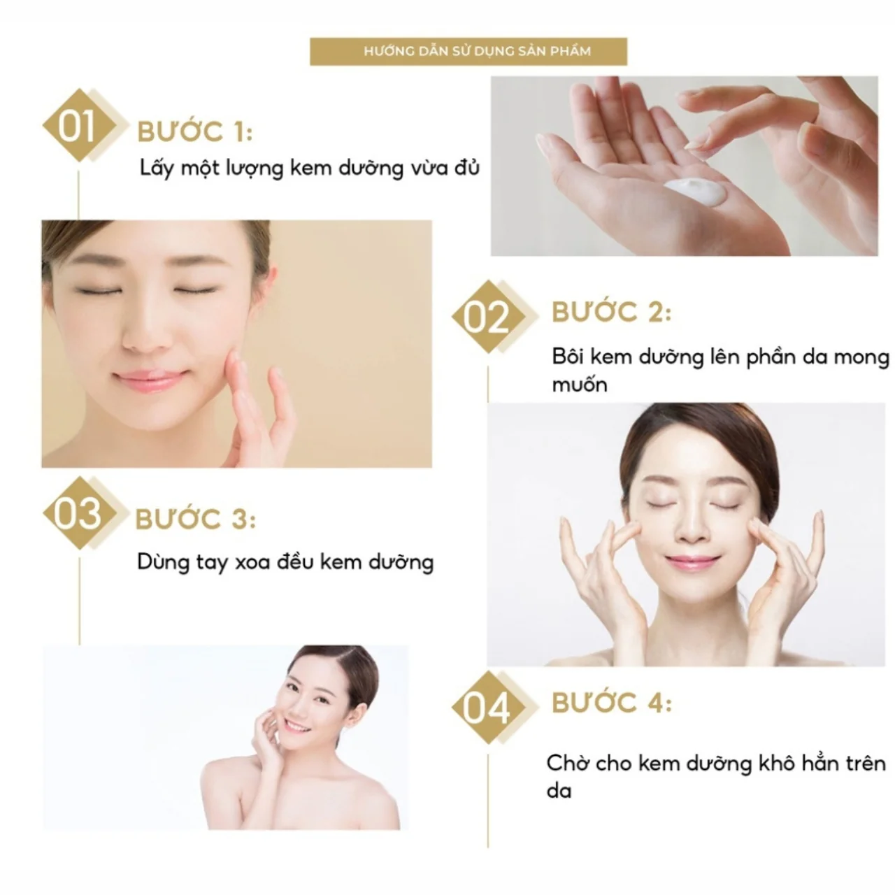 - Bước 2 : Lấy kem một lượng kem vừa đủ cho vào lòng bàn tay thoa đều lên da mặt