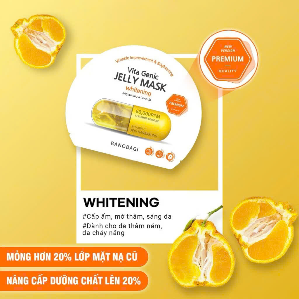Sở hữu ngay Mặt Nạ Banobagi Vita Genic Jelly Mask Whitening – Màu Vàng để trải nghiệm làn da trắng sáng, mềm mại và rạng rỡ mỗi ngày!