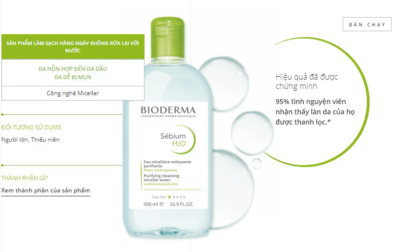 Bioderma Sebium H2O là sản phẩm nước tẩy trang dạng micellar từ thương hiệu nổi tiếng Bioderma, được thiết kế đặc biệt cho da hỗn hợp đến da dầu. Sản phẩm giúp làm sạch sâu, thanh lọc và cân bằng da hiệu quả, nhờ vào thành phần chính là kẽm và đồng, giúp loại bỏ bã nhờn dư thừa và tăng cường sức đề kháng tự nhiên của da.