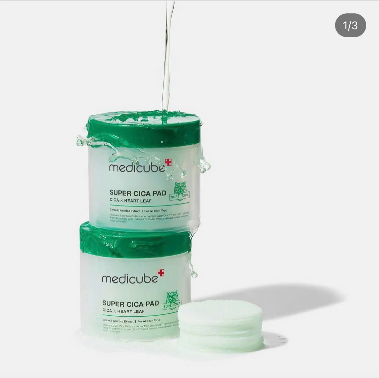Màu xanh lá: Super Cica Pad - Thành phần: chứa 88% chiết xuất rau má và Cica complex - Dùng cho da mụn/da nhạy cảm, dễ lên mụn, dễ kích ứng => Công dụng: Làm dịu da rất nhanh, cải thiện các bất thường trên da, giảm viêm nhiễm, mụn nhọt